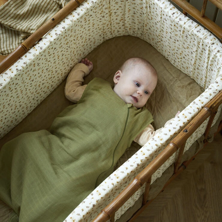 En blød sengerand som nænsomt omkranser dit barn, samtidig med at den forhindrer ben og arme, i at sidde fast mellem tremmerne i sengen. En blød og behagelig støtte under sengetid, som kan kombineres med seriens lagen og sengetøj for et matchende sæt. Mål: B: 25 cm L: 360 cm H: 3 cm