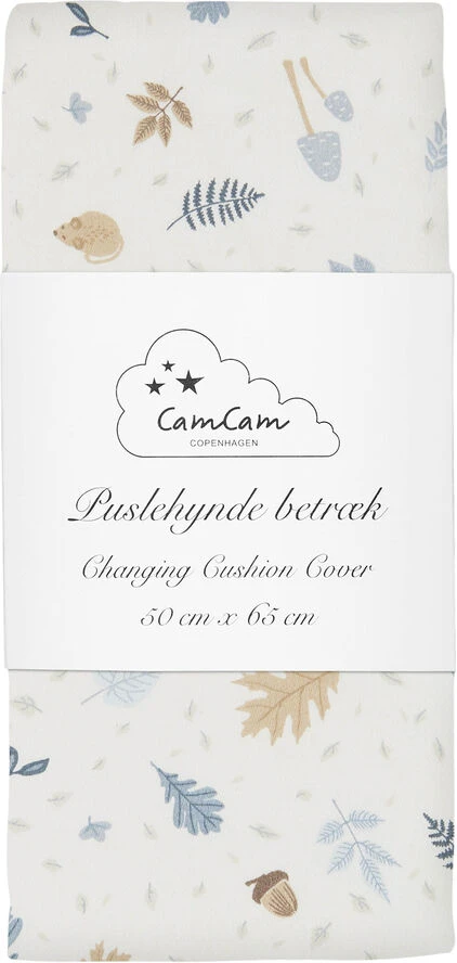 Et praktisk puslepude betræk, der passer til Cam Cam Copenhagens puslepuder. Betrækket har elastik i kanten, som gør det enkelt at tage af og på, og en coated overflade, så den er vand- og smudsafvisende.Findes i flere velkendte Cam Cam Copenhagen print. puslepude betræk i blå
