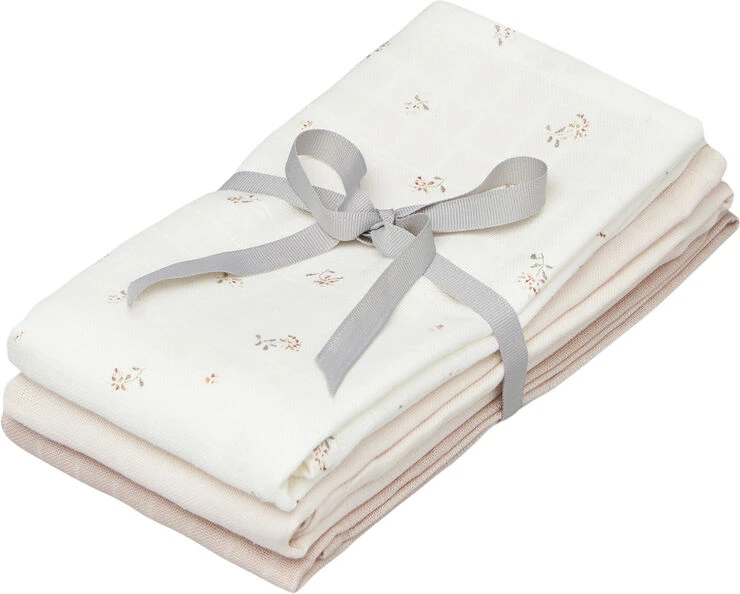 Blandet 3-pak af bløde stofbleer i 100% økologisk GOTS-certificeret muslin bomuld. Stofbleerne er multifunktionelle, og kan bruges både ved amning, ved bleskift, som nusseklud eller som solafskærmning i barnevognen. De 3 stofbleer er pakket med en fin grå sløjfe omkring, hvilket gør det til en oplagt lille gaveidé. Muslin stoffet trækker sig lidt sammen og ændrer tekstur efter vask. 3-pak kommer i forskellige kombinationer. Stofble i hvide nuancer.