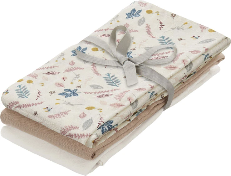 Blandet 3-pak af bløde stofbleer i 100% økologisk GOTS-certificeret muslin bomuld. Stofbleerne er multifunktionelle, og kan bruges både ved amning, ved bleskift, som nusseklud eller som solafskærmning i barnevognen. De 3 stofbleer er pakket med en fi