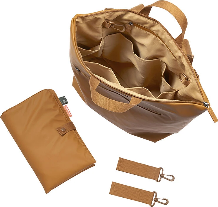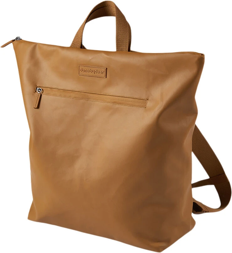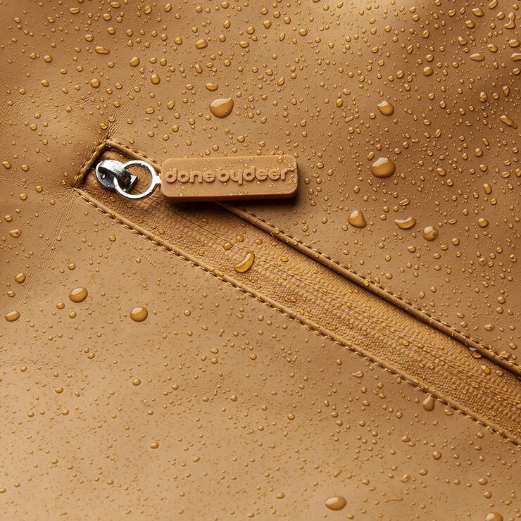 Done by Deer's puslerygsæk kombinerer funktionality, holdbart design og bæredygtighed. 38 PET flasker genanvendes ved fremstillingen af både det ydre stof og foret. Den rummelige og praktiske puslerygsæk giver dig friheden til at være på farten og medbringe alle babys nødvendigheder. Vandtæt overflade og lynlåse gør at rygsækken er vejrsikker. Den brede åbning giver let adgang til indholdet og 7 praktiske indvendige lommer og en udvending lomme med lynlås gør organisering til en leg. Der medfølger et foldbart og vandtæt pusleunderlag, samt to barne- eller klapvognsstropper.