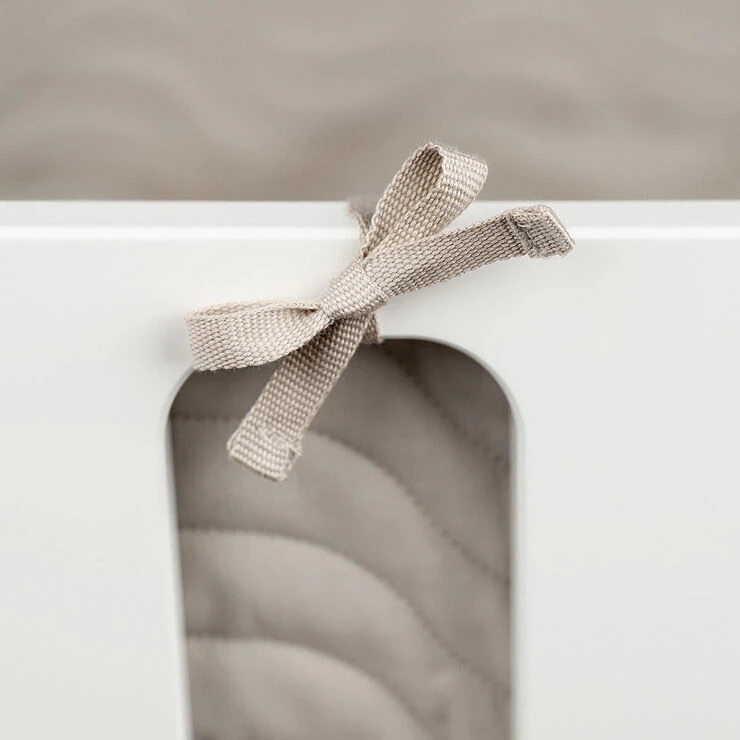 Den quiltede sengerand i blødt økologisk bomuld har et let polyesterfyld, der beskytter dit barns hoved, når der tumles rundt i tremmesengen. Sengeranden er perfekt til at indrette en hyggelig seng og matcher sengetøjs-kollektionen fra Done by Deer. Den bløde sengerand har praktiske bånd, der gør det nemt at fastgøre den til tremmesengen. Sengeranden måler 360 cm., hvilket gør den velegnet til de fleste babysenge. Lad din baby rejse til drømmeland omkranset af den blå sengerand i det fine, quiltede Waves mønster. Sengeranden kan vaskes ved 30 grader i vaskemaskinen.
