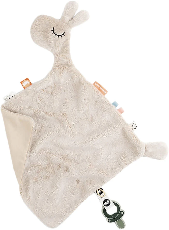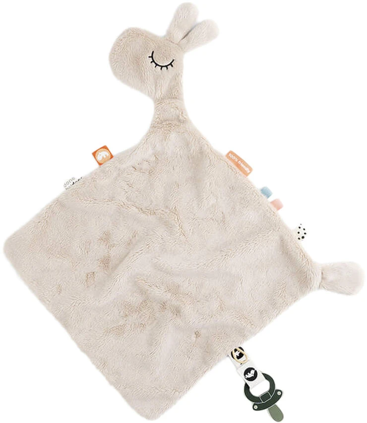 Lad din baby nusse med den hyggelige Lalee sutteklud. Den lille nusseklud er super blød og behagelig for din baby at røre ved, når turen går til drømmeland – eller en tryg ven når I besøger nye steder. Baby suttekluden er fyldt med sjove mærker og spændende teksturer klar til at blive udforsket. Den praktiske Velcro-strop gør det nemt at fastgøre sutter til nussekluden. Den hyggelige lama nusseklud har en lys, sandfarvet nuance og kan vaskes ved 30 grader i vaskemaskinen.