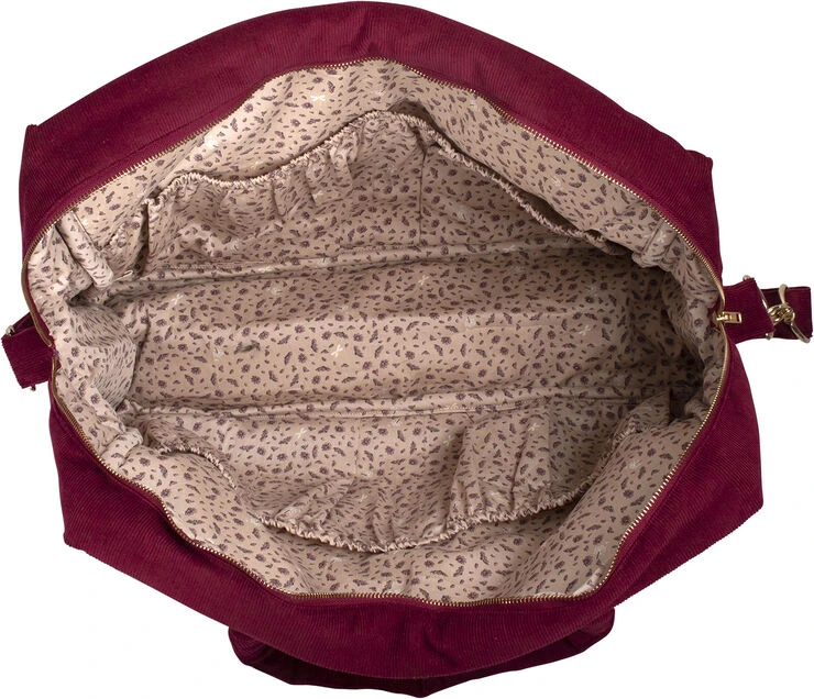 Vores mommy bag er designet både til mor og barn som en weekend taske eller en større pusletaske, som en del af vores nye fløjls serie, Med stor rummelighed og praktiske lommer både indvendigt og udvendigt er det let at organisere taskens indhold, Indvendigt er tasken ensfarvet i farven Moss green som er en smuk tone-i-tone farve til den grønne fløjl, Tasken er coated på indersiden som gør den smuds- og vandafvisende,