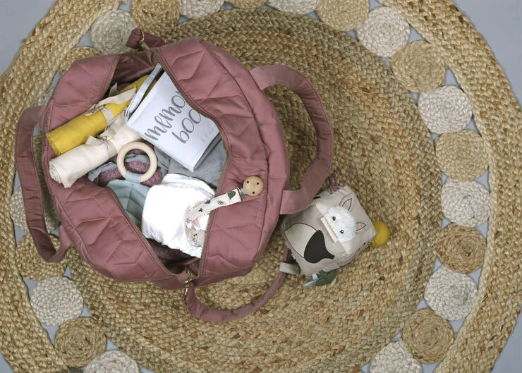 Filibabba har produceret en flot og praktisk mommybag som en del af Deres quilt-kollektion. Tasken har en god størrelse og kan både bruges som større pusletaske eller som weekendtaske til mor eller far. Udvendigt har tasken en lomme med lynlås på den ene side og to åbne lommer på den anden side. Invendigt har den fire gode store lommer med elastik i toppen så tingene der lægges i lommerne holdes på plads. Der medfølger en lang rem så tasken kan bæres over skulderen eller hænges på barnevognen.
