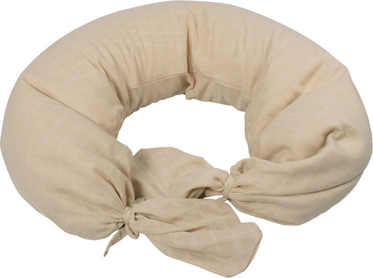Juno multipuden er en videreudvikling af vores klassiske ammepude, som følger dig gennem hele din graviditet og dit barns første år. Betrækket på vores Juno pude er lavet af 100% økologisk bomuld, og puden har mange funktioner. Du kan bruge din Juno pude som: Graviditetspude Ammepude Rede / stol til baby Støtte ved mavetid for baby Opdag alle Junos funktioner: Som graviditetspude aflaster Juno din lænd, dit bækkenområde, dine ben og ikke mindst din voksende mave. Efter fødslen skaber Juno god støtte til alle forældre og baby, når I ammer eller giver flaske. Ammer du liggende, støtter puden din babys ryg, mens den ved laid back amning eller amning i en siddende position giver ekstra stabilitet. Dette er meget vigtigt, for når du sidder og ligger behageligt, kan både dig og din baby slappe helt af under måltiden. Dette gør ikke kun, at forældrene undgår ømme arme og skuldre, men kan også bidrage til at baby får bedre fat om brystet og sutter mere aktivt. Derudover muliggør det en lang og tæt kontakt mellem forældre og det lille barn. Ved legetid kan du binde pudens enderne sammen og skabe en hyggelig rede for din baby. Også ved mavetid er Juno multipuden en god følgesvend på gulvet. Du skal blot lægge barnet hen over puden for at hjælpe baby med at udvikle stærke nakke- og skuldermuskler og fremme babys motorik. Er baby klar til at sidde op, kan puden bruges som støttepude til ryggen. Senere gør puden legehjørnet og de små huler endnu mere hyggelige. Vores multipude er fyldt med antibakterielle Krøyer-kugler, som gør multipuden nem at forme, og som skaber en fantastisk ligge- og spise-komfort. Betrækket er lavet af 100% økologisk bomuldsmusselin, som giver puden en silkeblød overflade. Betrækket kan nemt tages af og vaskes ved 40 grader.