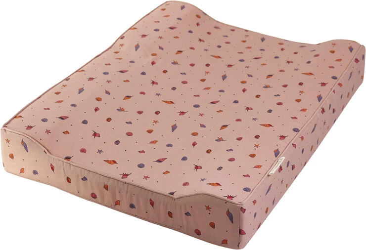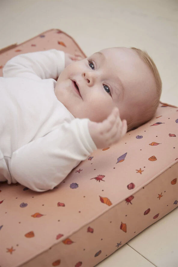 Collection of memories skaber med sine håndtegnede elementer en følelse af ro og frihed. Følelsen af at udforske havets bund eller strandens vandkant, samle skaller og skabe minder vi glædeligt husker tilbage på. Med skaller i forskellige størrelser får printet masser af liv og et drømmende udseende, mens mikset af de rolige og friske farver skaber en glæde indeni os. Collection of memories kommer i fuld serie, med mulighed for at skabe et komplet drømmende univers. En skøn puslepude fremstillet i økologisk satinvævet bomuld med polyesterskum indeni. Derudover har vores puslepude et PU (polyurethan) lag, som er fri for skadelig kemi. Dette gør, at puslepuden får en vandafvisende overflade, som gør den nem at tørre af. Med en lynlåsfunktion er det nemt at tage betrækket af, så det kan vaskes efter behov. Husk at strække betrækket, når det kommer ud af vaskemaskinen, sæt det på puslepuden og lad det tørre på, dette er for at mindske, at betrækket krymper.