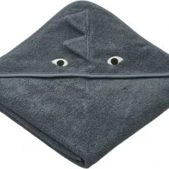 JUNIORHÃNDKLÃDE MED HÃTTE OG ÃRER Det blødeste juniorhÃ¥ndklæde med hætte i økologisk bomuld. Perfekt af putte sig i efter badet eller til udklædningslege. OM PRODUKTET ⢠Kvalitet- 100% økologisk bomuld ⢠Yderst absorberende ⢠Hætte med ører og broderi DETALJER