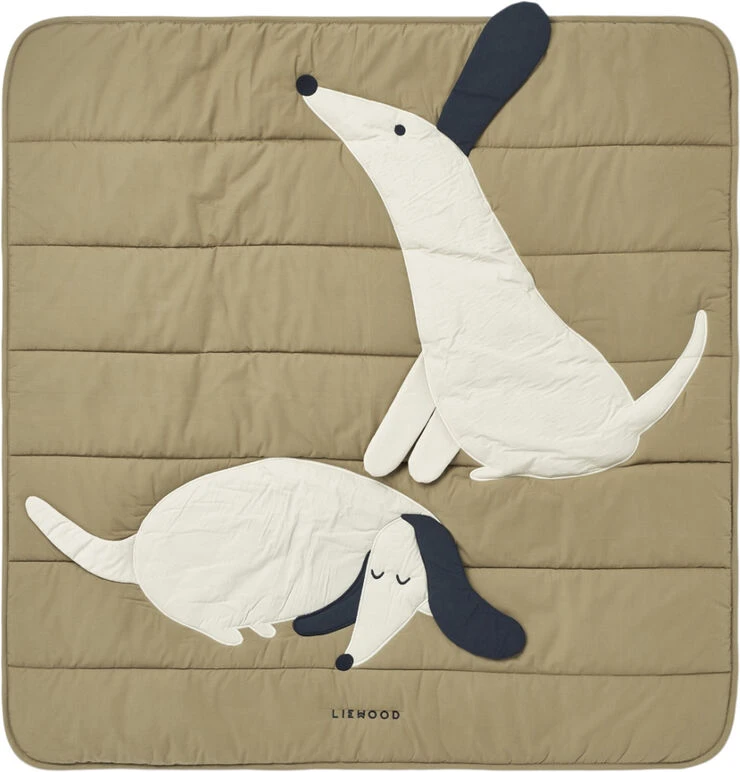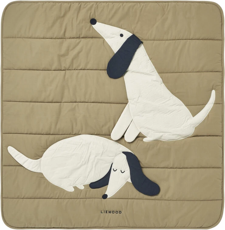 AKTIVITETSTÆPPE I ØKOLOGISK BOMULD<br>Udviklet til at udvikle dit barns motorik og nysgerrighed med masser af leg. Dinosaurerne kan løftes og afsløre søde hemmeligheder.