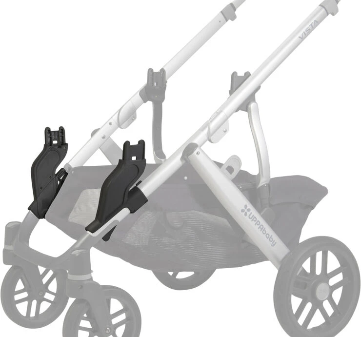 UPPAbabys nederste adapter forvandler din VISTA-model til en søskendevogn. Klik liggedelen på nederst og siddedelen tættest på dig. Adapterne skaber mere plads mellem de forskellige sæder.<br><br>Hurtig montering, ingen brug for værktøj.<br>Farvekodede prikindikatorer for at sikre korrekt montering.<br>VISTA-modellen kan foldes sammen med en adapteren på.